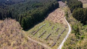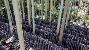 ●ほだ場:この「榾木」を並べて、椎茸を発生させ、収穫しやすくした専用の場所のこと。