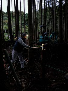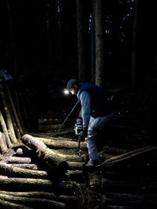 秋の日は短く、山は17時を過ぎるとあっという間に暗くなります。ヘッドライトの灯りを頼りに作業を続けることもしばしばです。