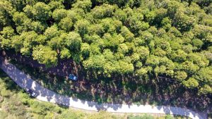 下の写真は今回の「ほだ場」です。道沿いの杉林の中にあります。