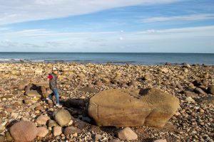 海岸線を歩いていると大きな岩があり、よく見ると昔の人が割ろうとした跡が残っていました。